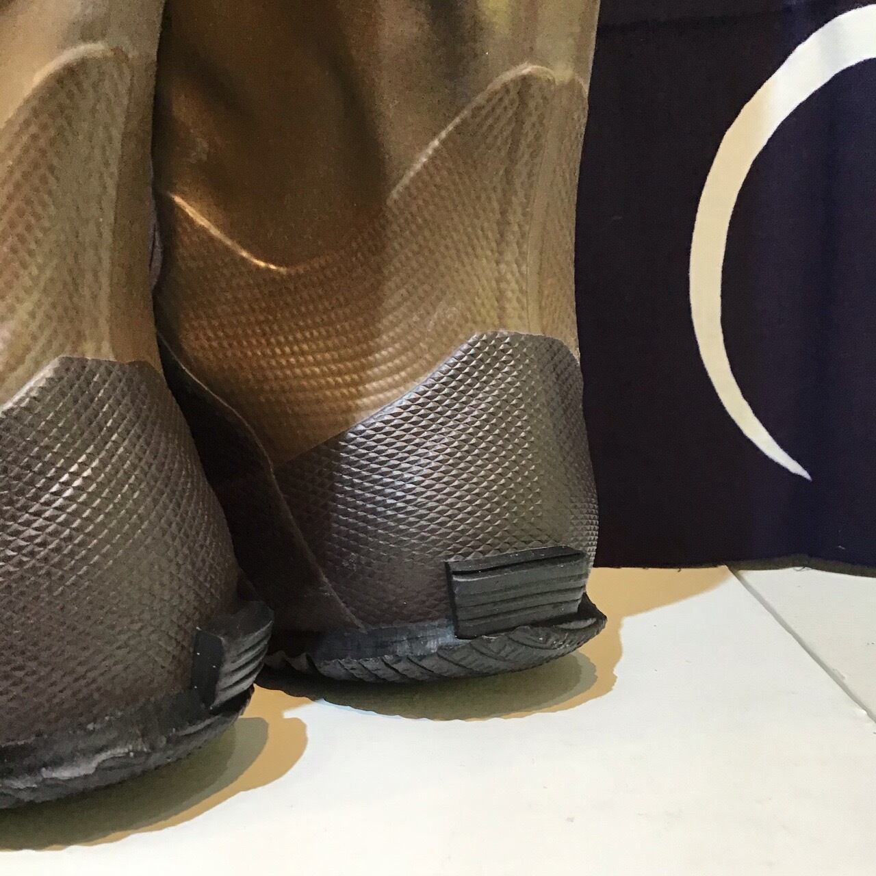 ぬかるみでの歩行に対応し、足首の部分をフィットさせるつくりのため、脱ぎ履きに多少きつさがあります。普段のサイズより1つ大きいサイズをおすすめします。ジャストサイズをお選びいただくと、体型や靴下の厚さなどにより、きつさを感じる場合があります。