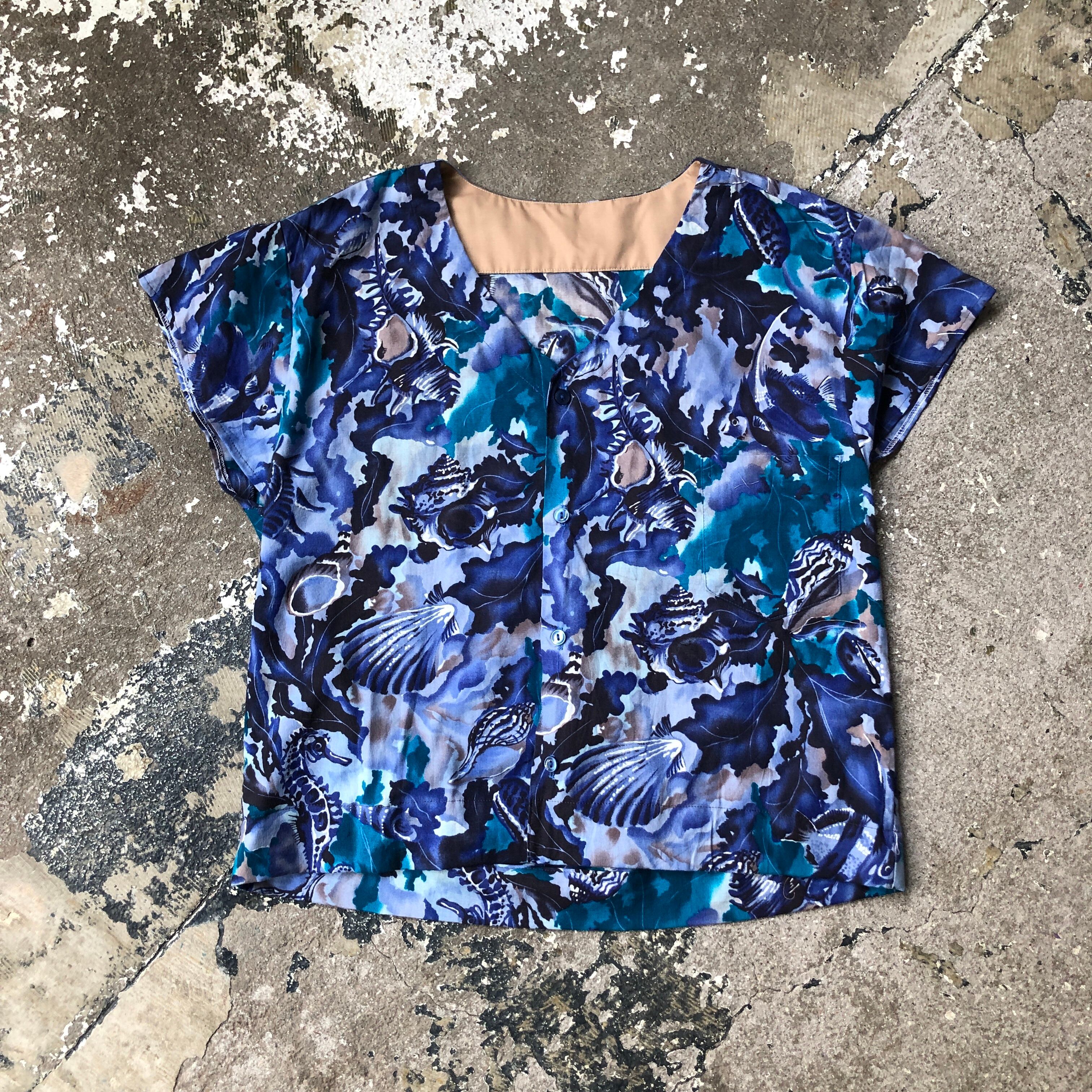 used remake:S/S Vネックリメイクシャツ Color:blue