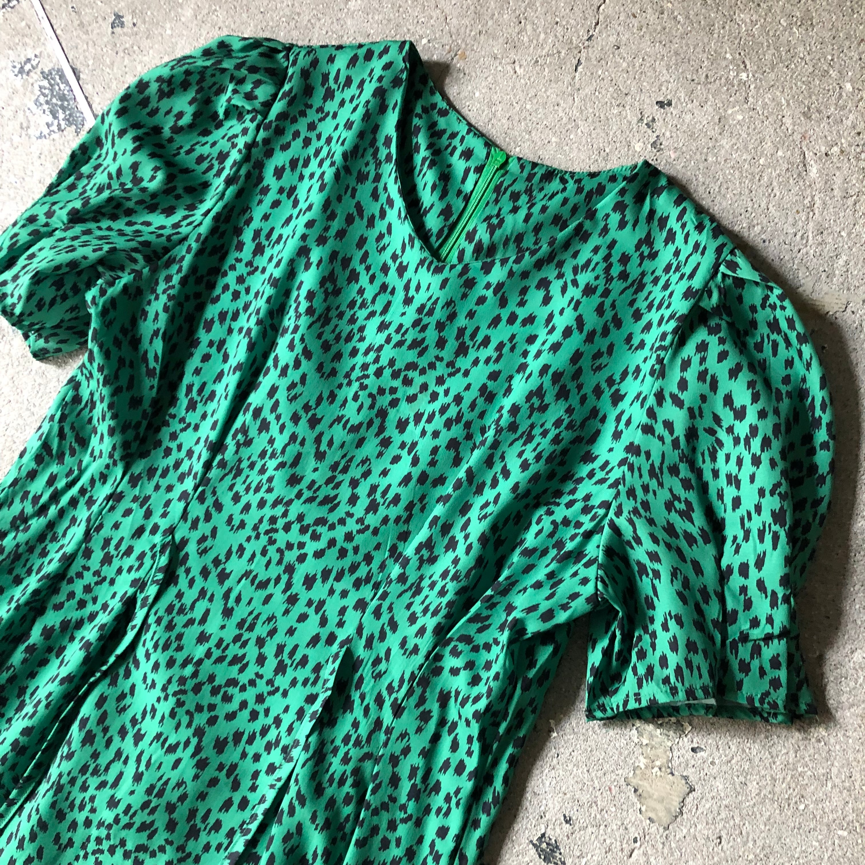 女性らしいラインが引き立つワンピースです。ヒョウ柄がアクセントになり、パンツスタイルで崩したコーディネートにもおすすめです。