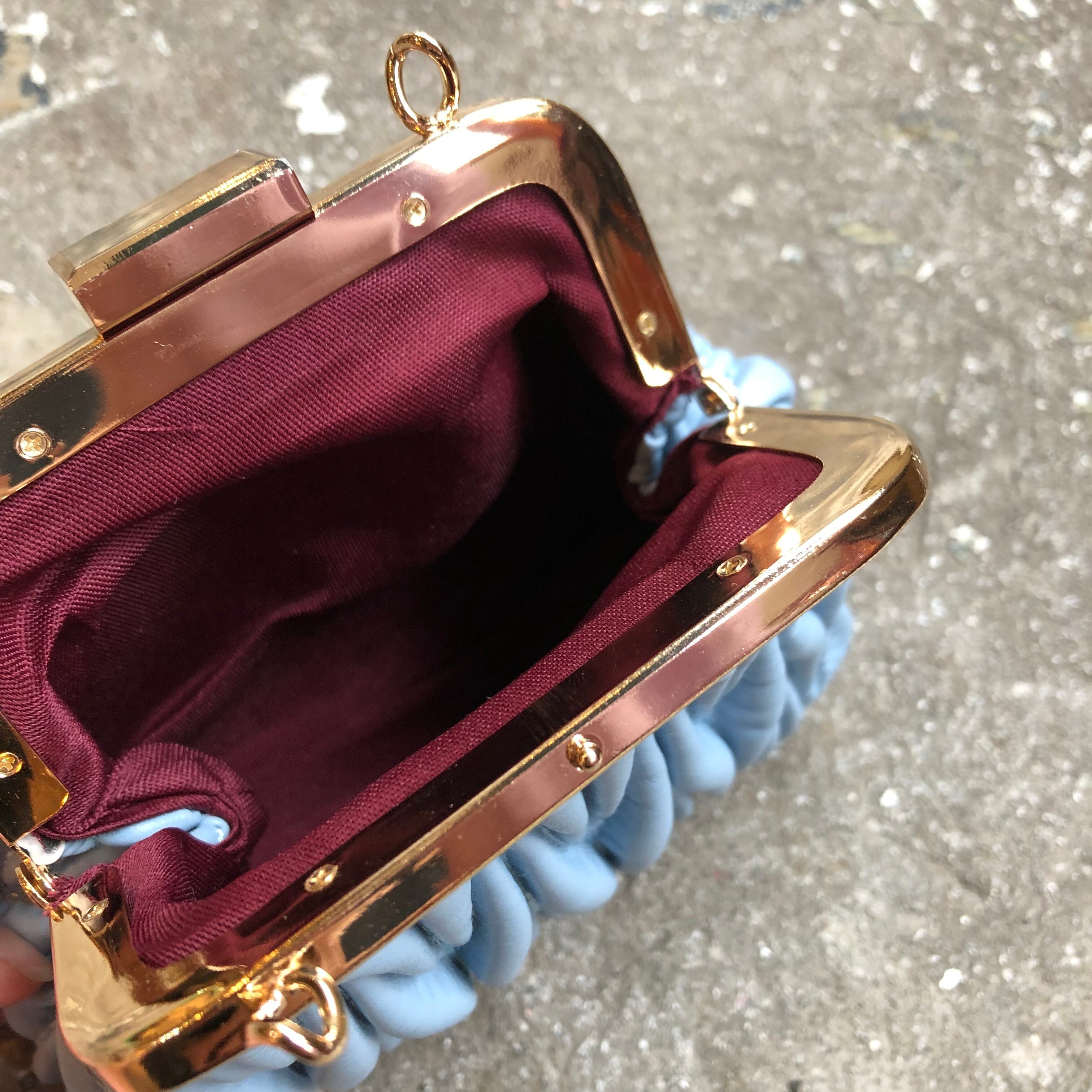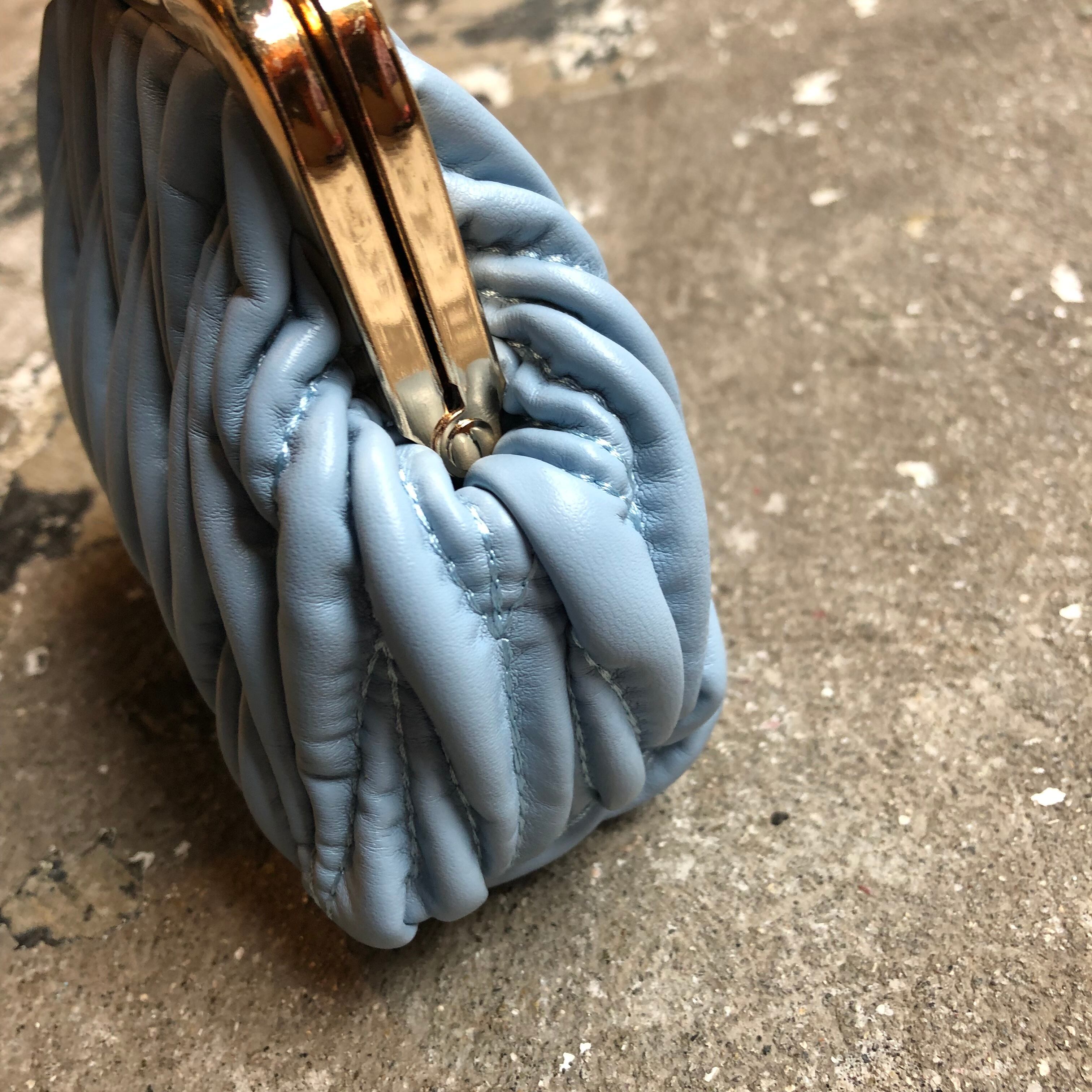 Mini quilting chain bag Color:Light Blue/Black/Off White