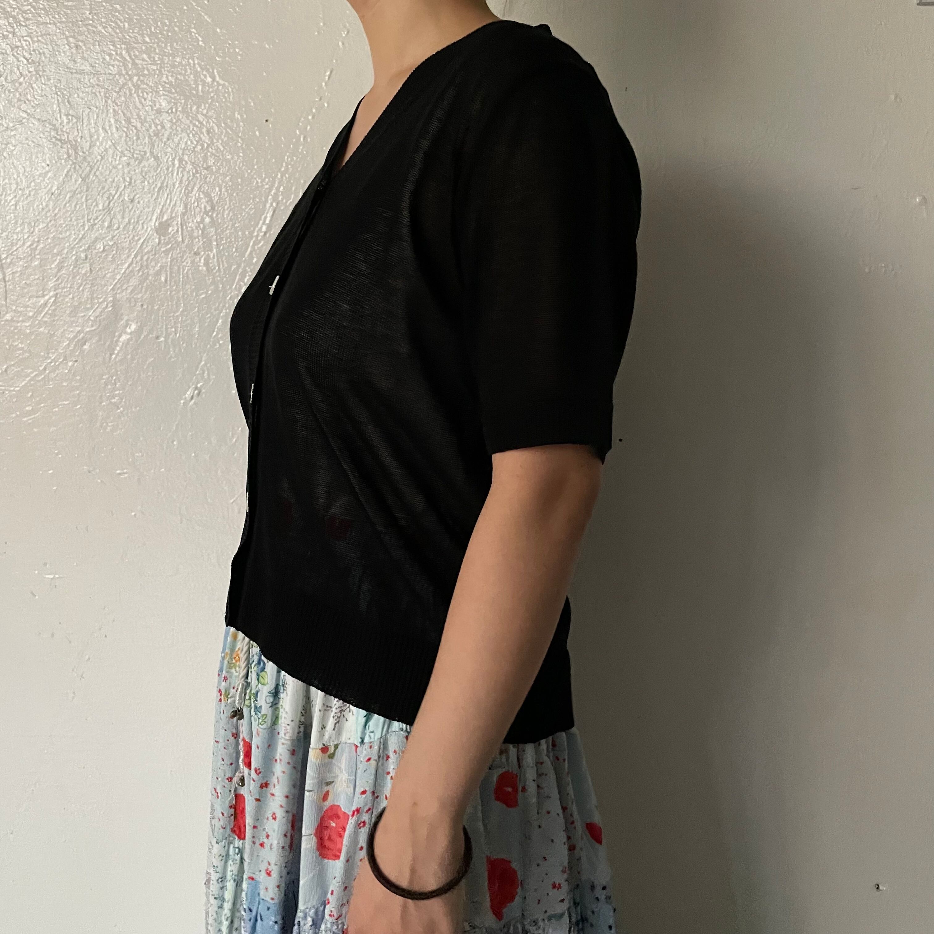 ややシアー感のあるプレーンなサマーカーディガントップスです。タイトなタンクトップやキャミソールの上にトップスとしても活躍してくれます。