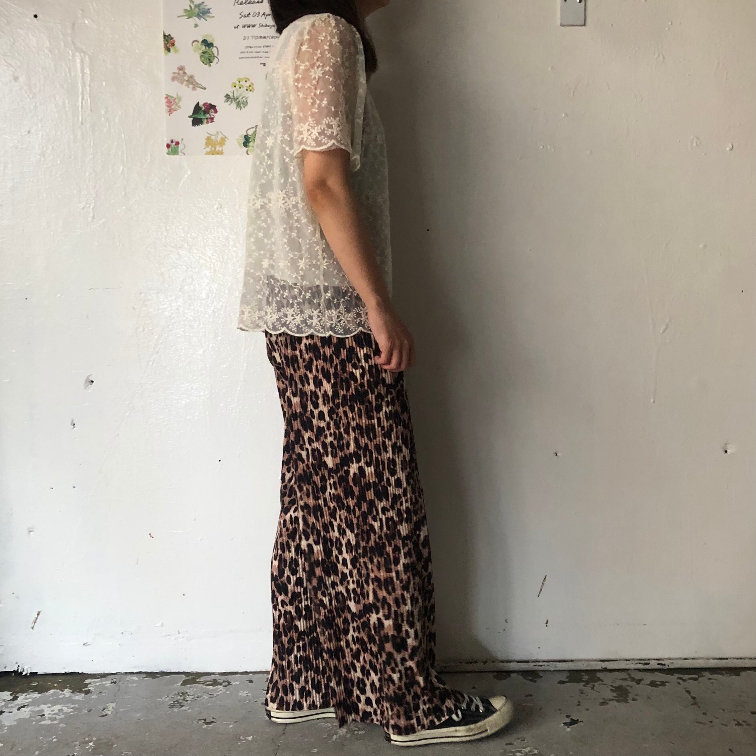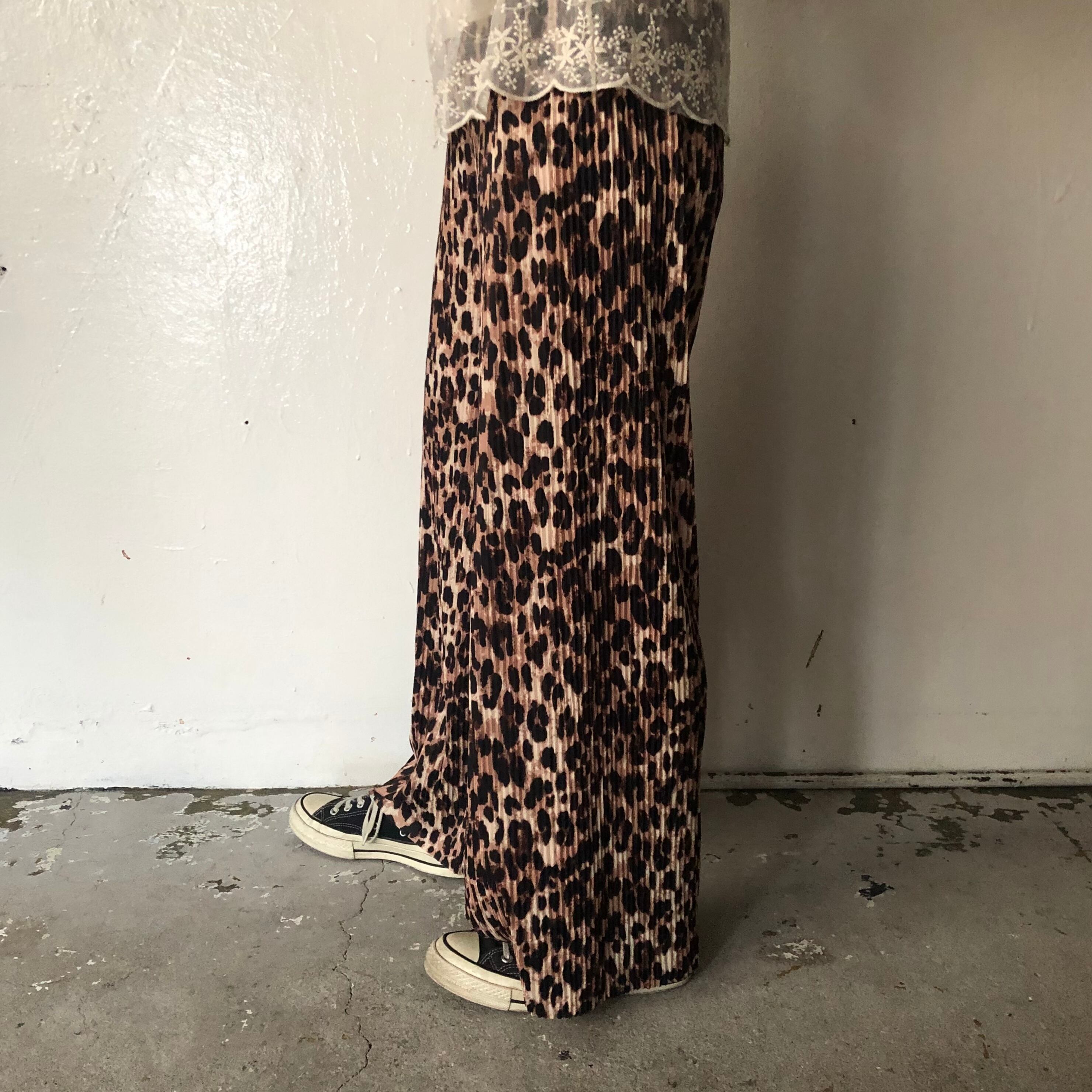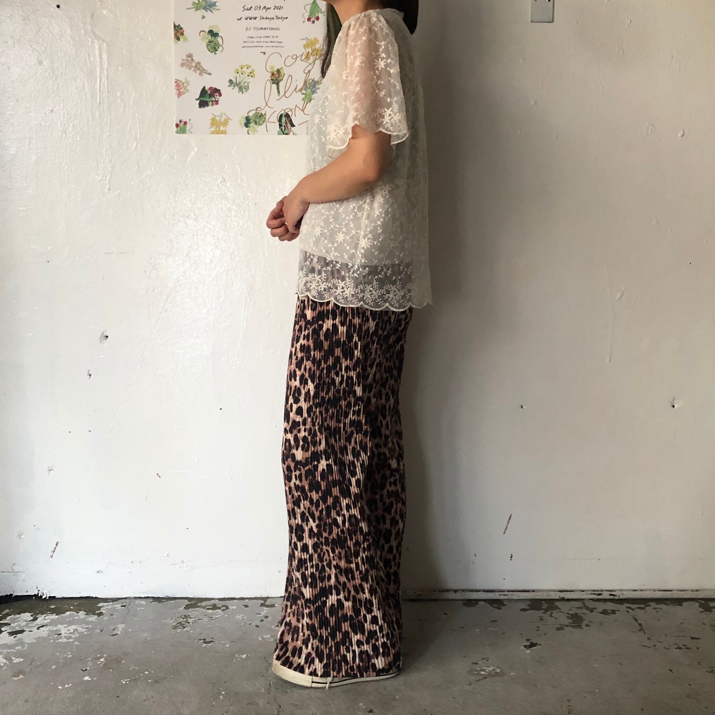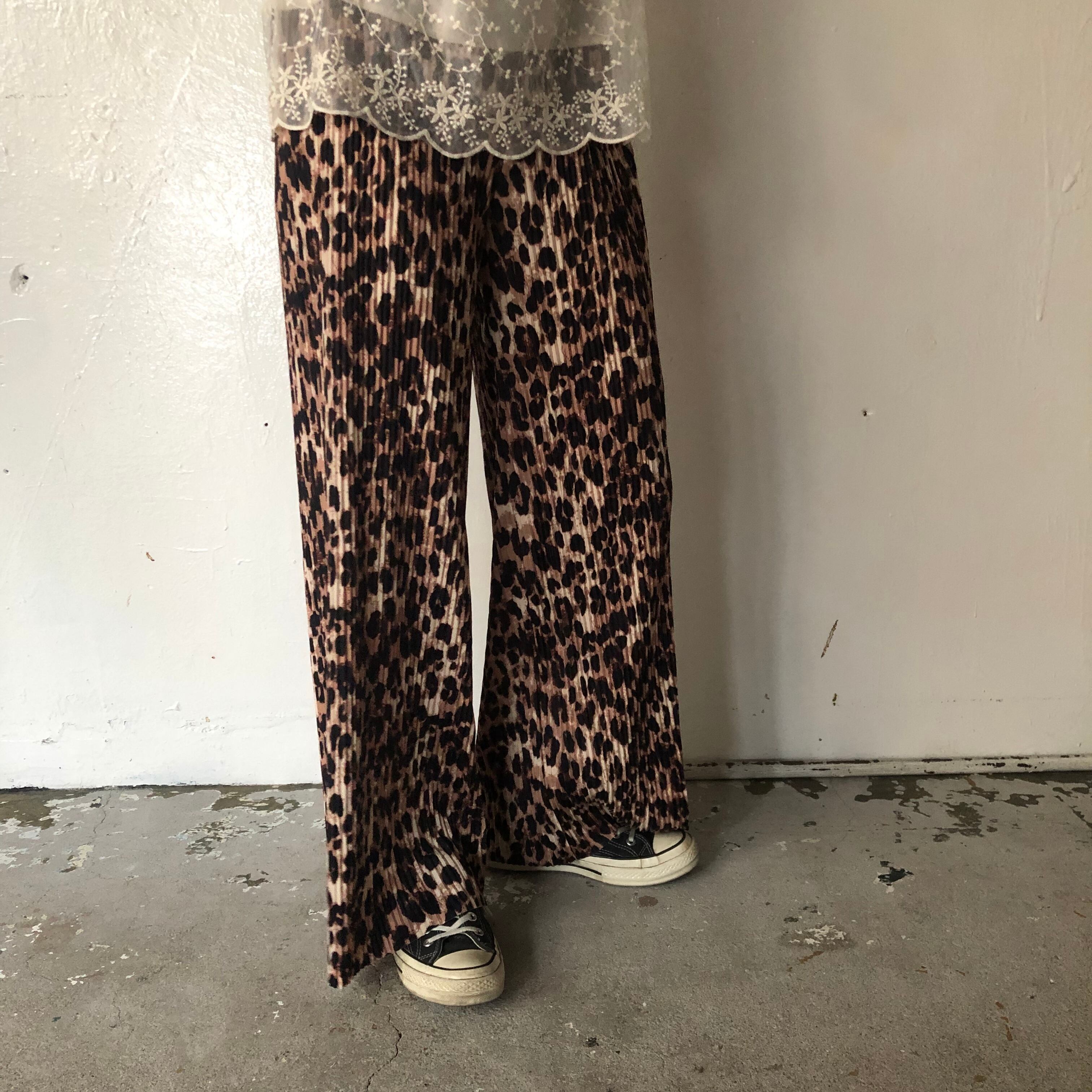 すとんとしたストレートラインのイージーパンツです。裏地がなくとも透け感のなく茶器右葉いただけます。柄を楽しんだコーディネートにおすすめです。