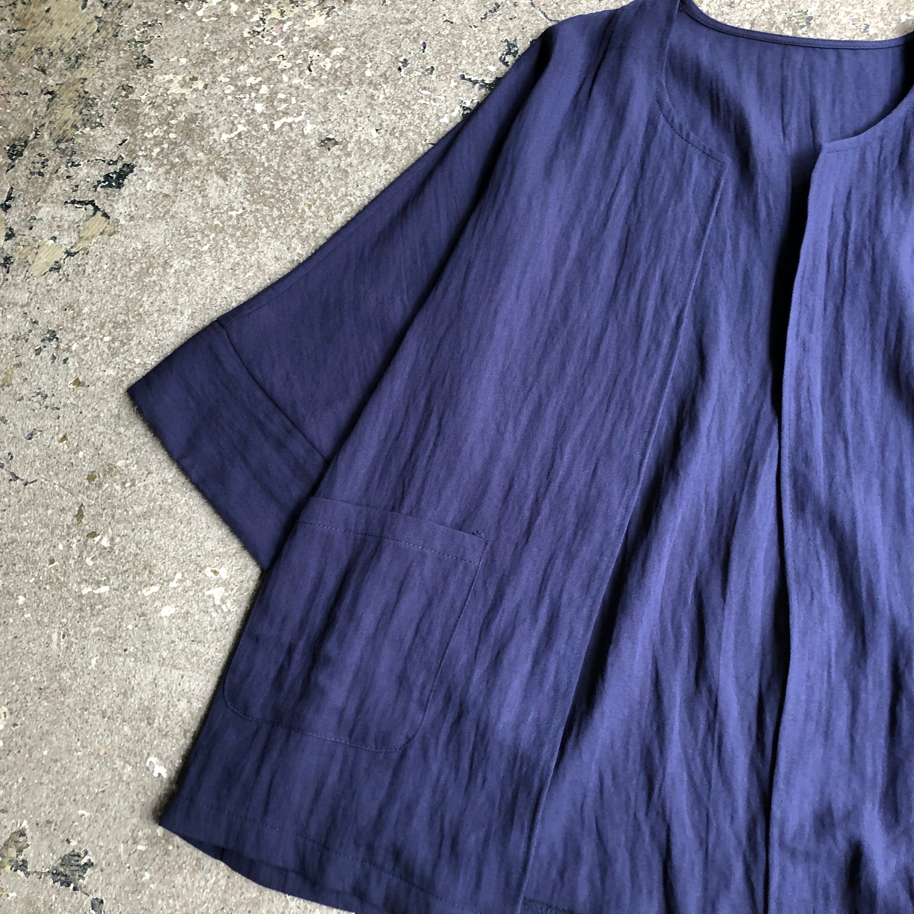 肌触りの良い生地で作られた季節の羽織りものです。ドルマンスリーブで脇周りに生地が当たらない分涼しく着用いただけます。
