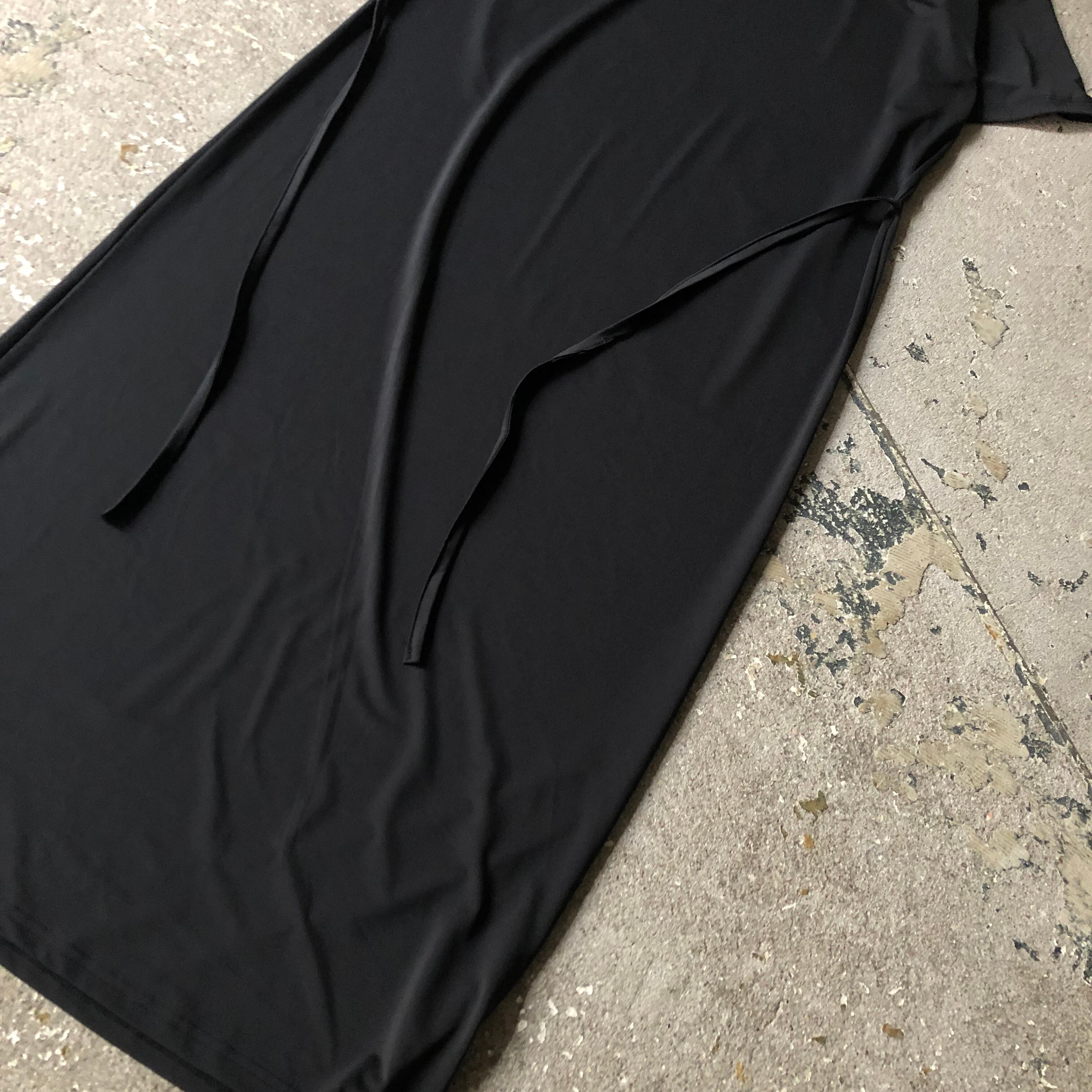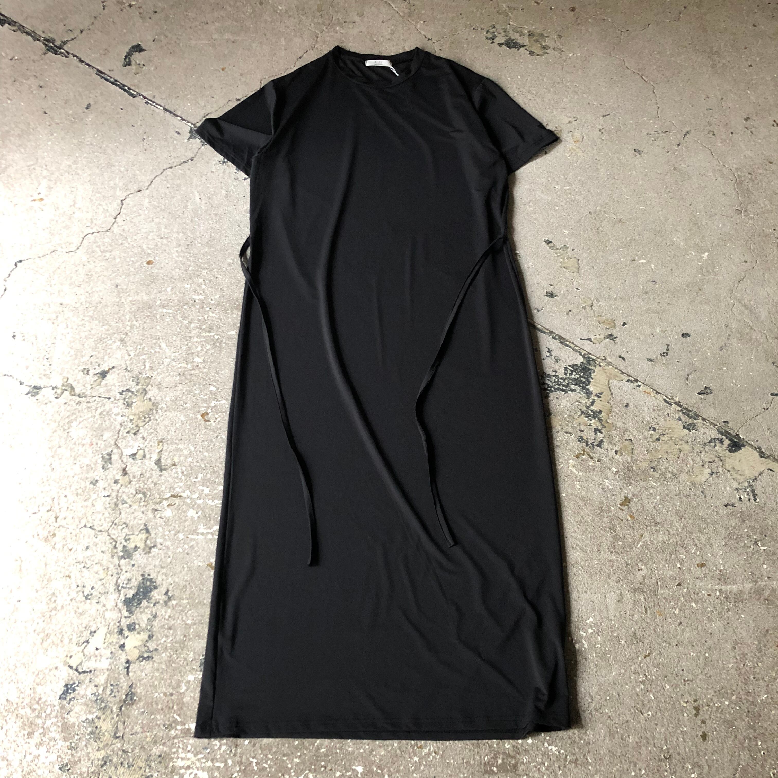 スポーティな生地でストレートラインが綺麗なTシャツワンピースです。ウエストの紐ベルトでブラウジングして長さを調節して着用いただけます。