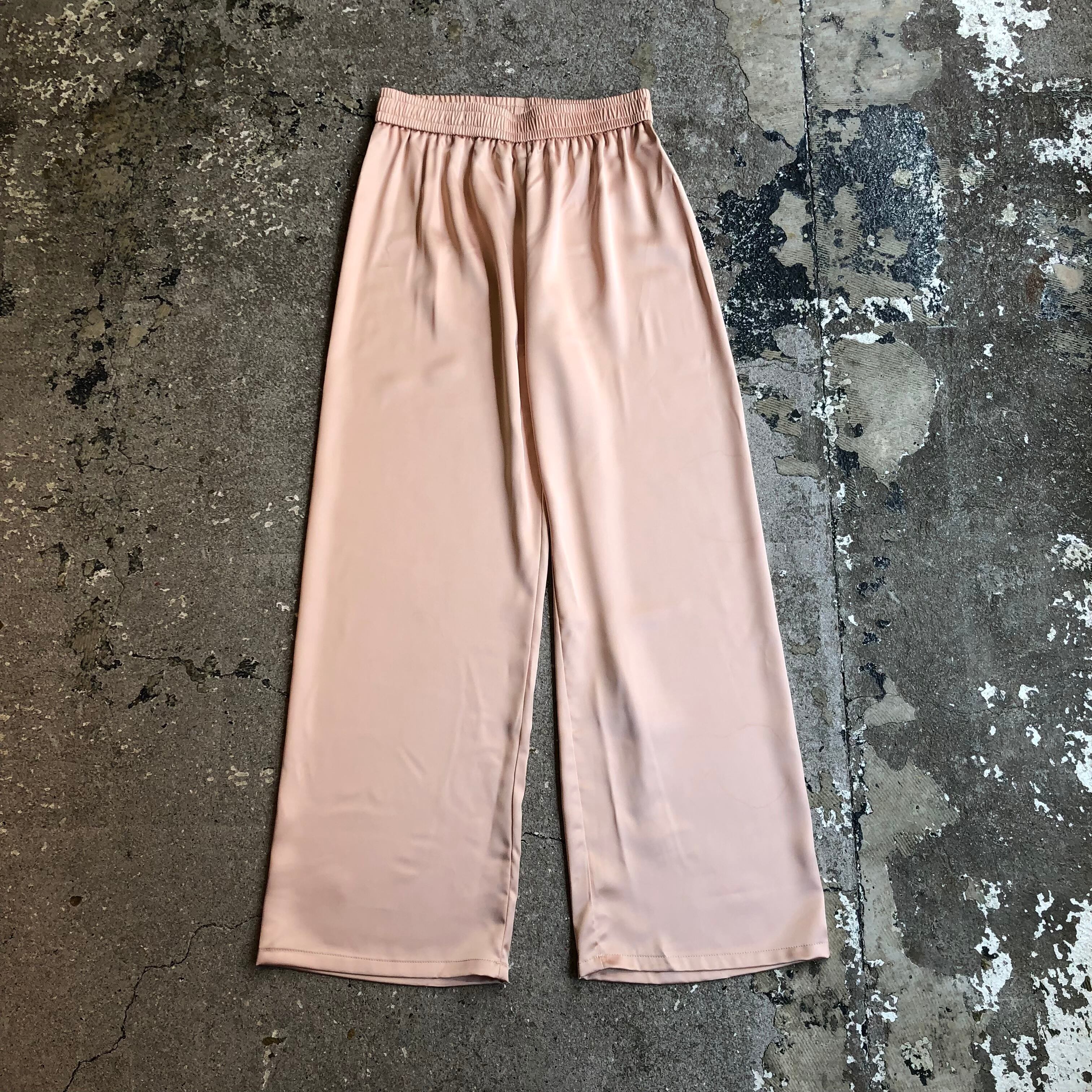 優しい光沢がコーディネートのアクセントになる一枚です。緩みのあるストレートラインで透け感無く着用いただけます。