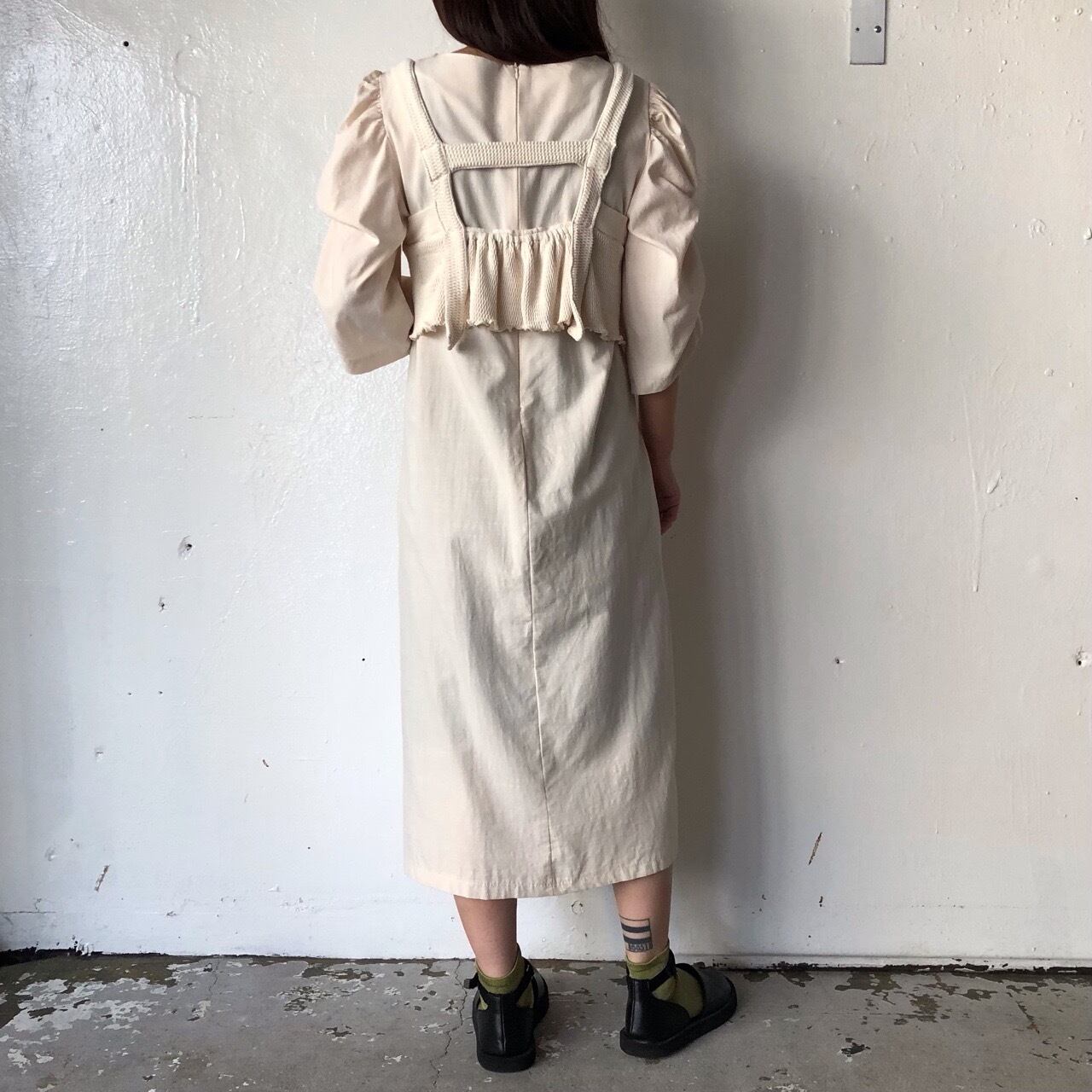 ギャザーが施されたスリーブがアクセントのストレートラインのワンピースです。スリーブレスなアイテムとのレイヤードにも◎
