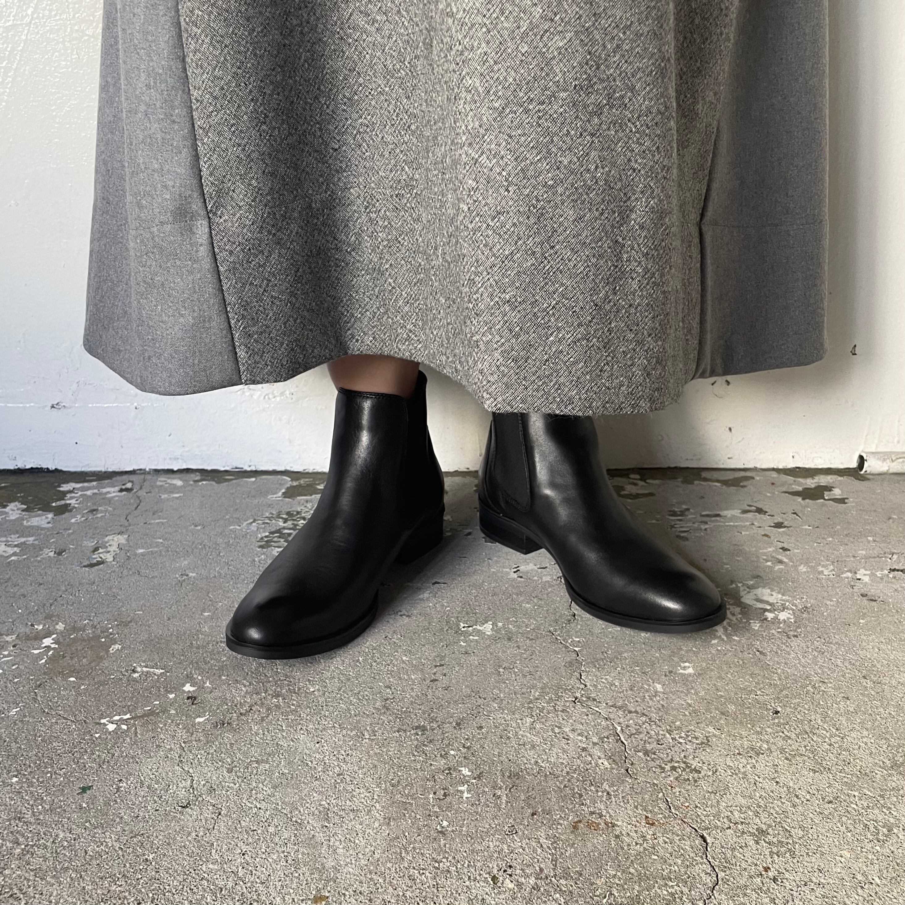 シンプルなデザインながらスタイリングのしやすさには定評があるサイドゴアレザーブーツ。サイドのゴムは適度に伸び、スムーズな着脱が可能です。インソールには、適度なクッション性があるパッドをレザーの中に入れていますので長時間の歩行にも快適に着用いただけます。