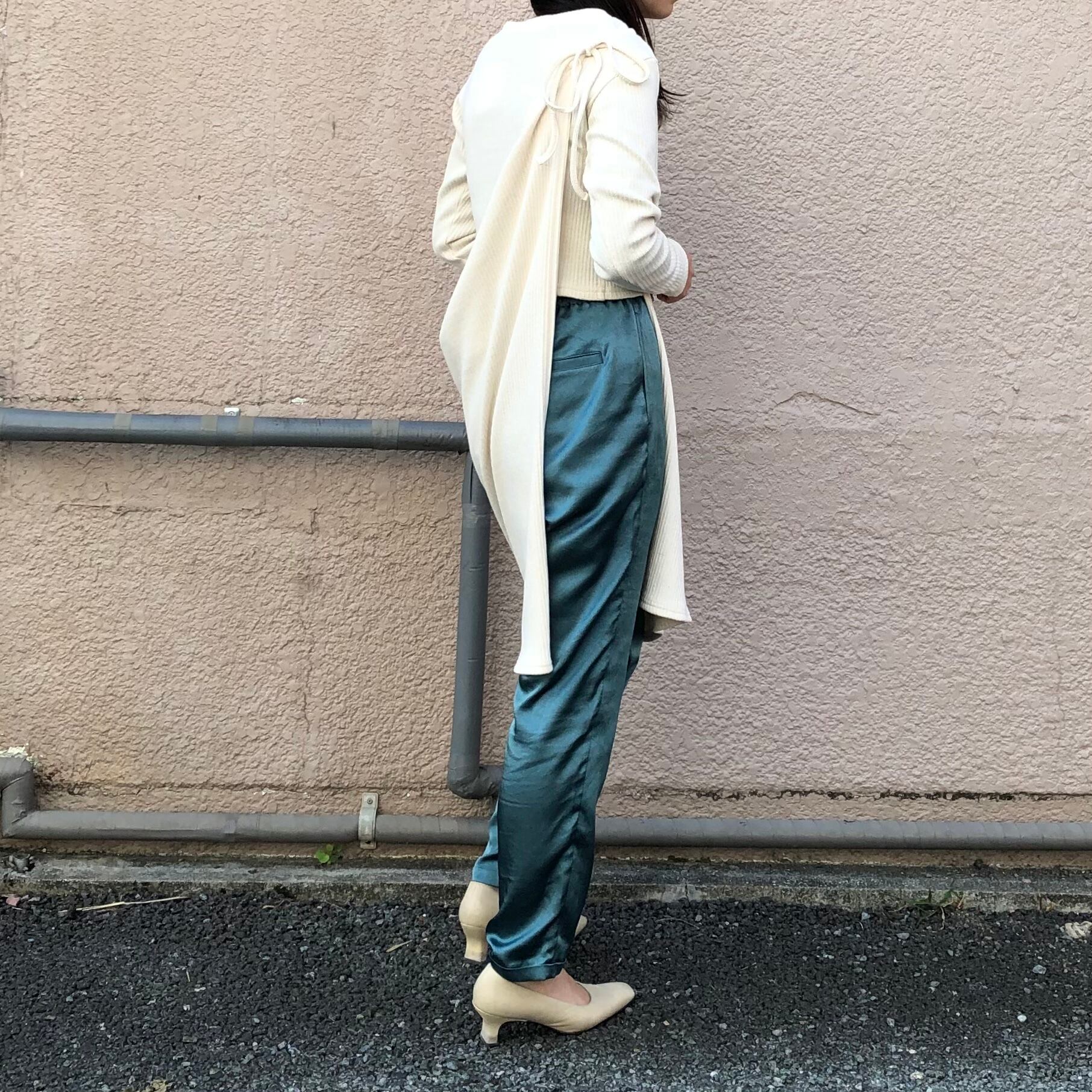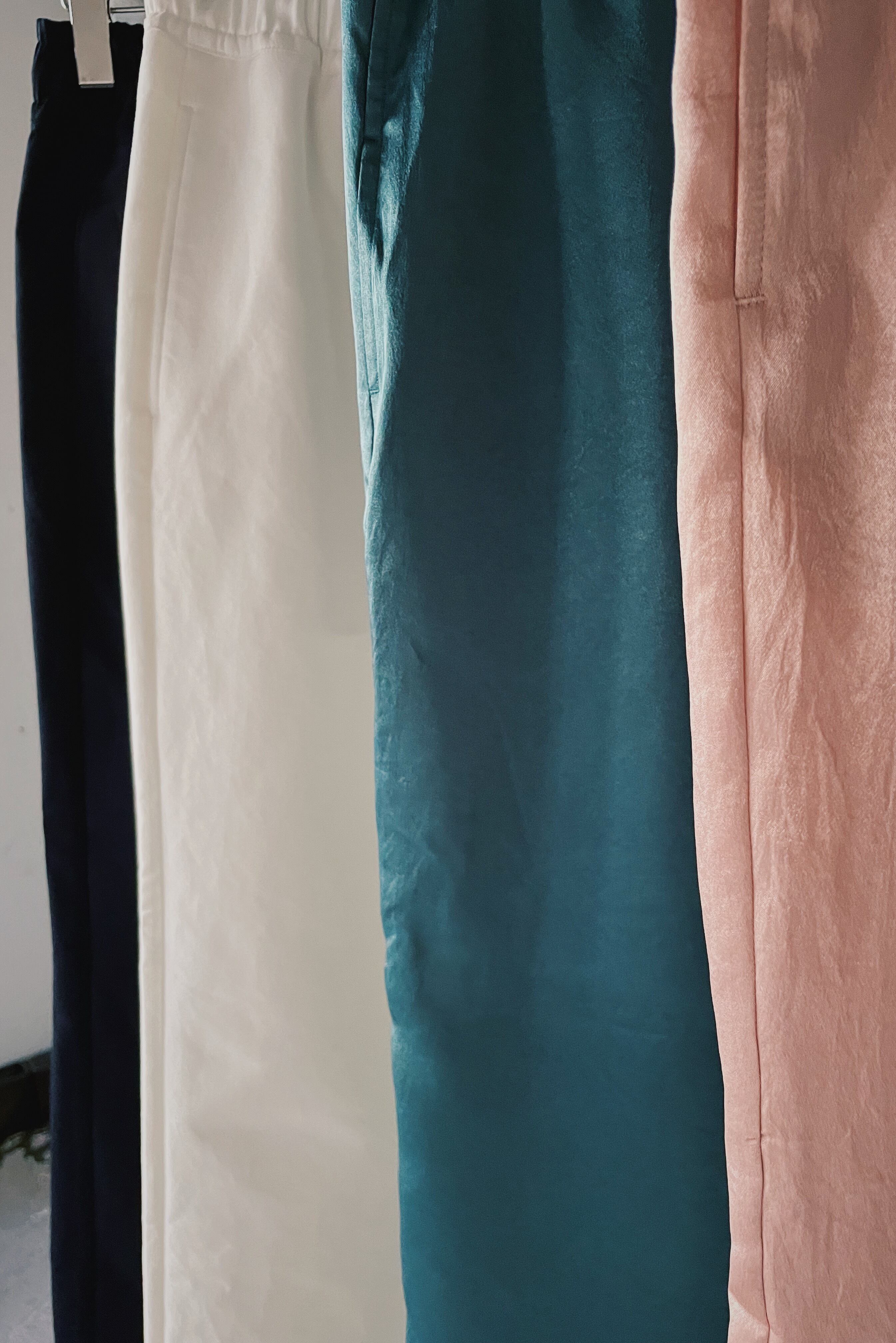 生地は、艶やかで発色の良いサテンを採用し、季節問わずサラッと気軽に履けるボトムスを目指しました。