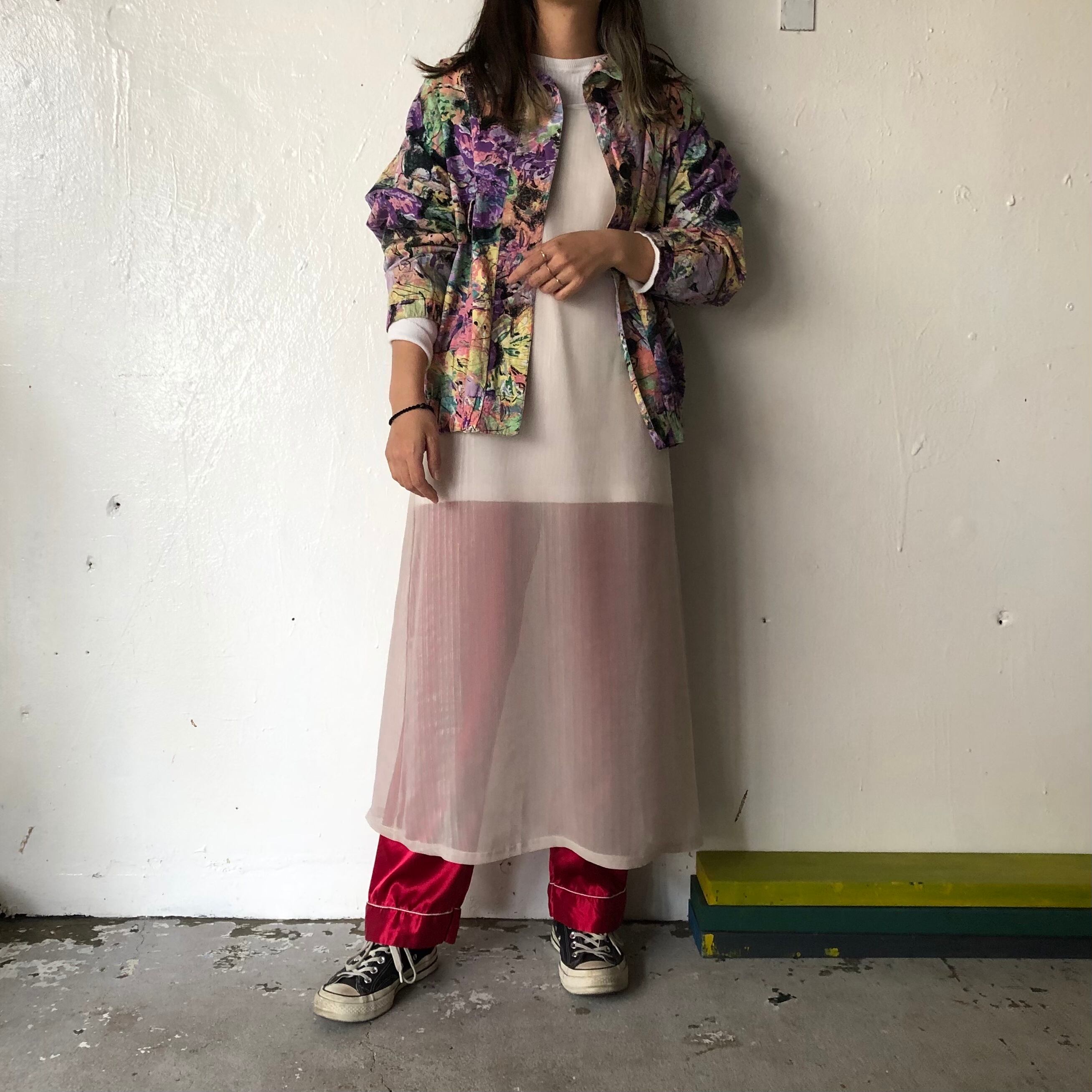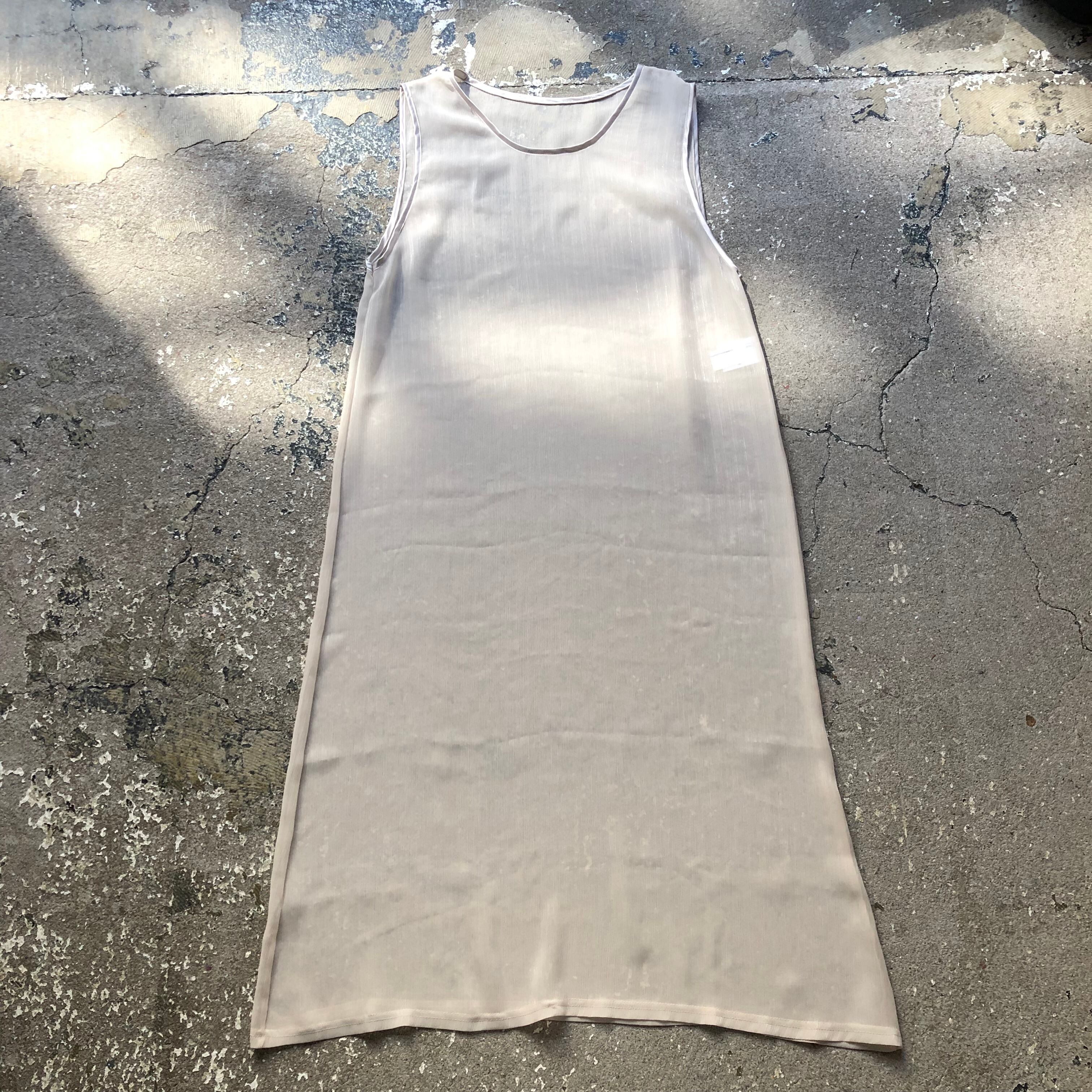 ロングTシャツやタートルネックの上からや、オーバーサイズのニットのインナーなどにレイヤードして楽しめるシアーワンピースです。柔らかく揺れる、ラメの生地で仕上がっております。