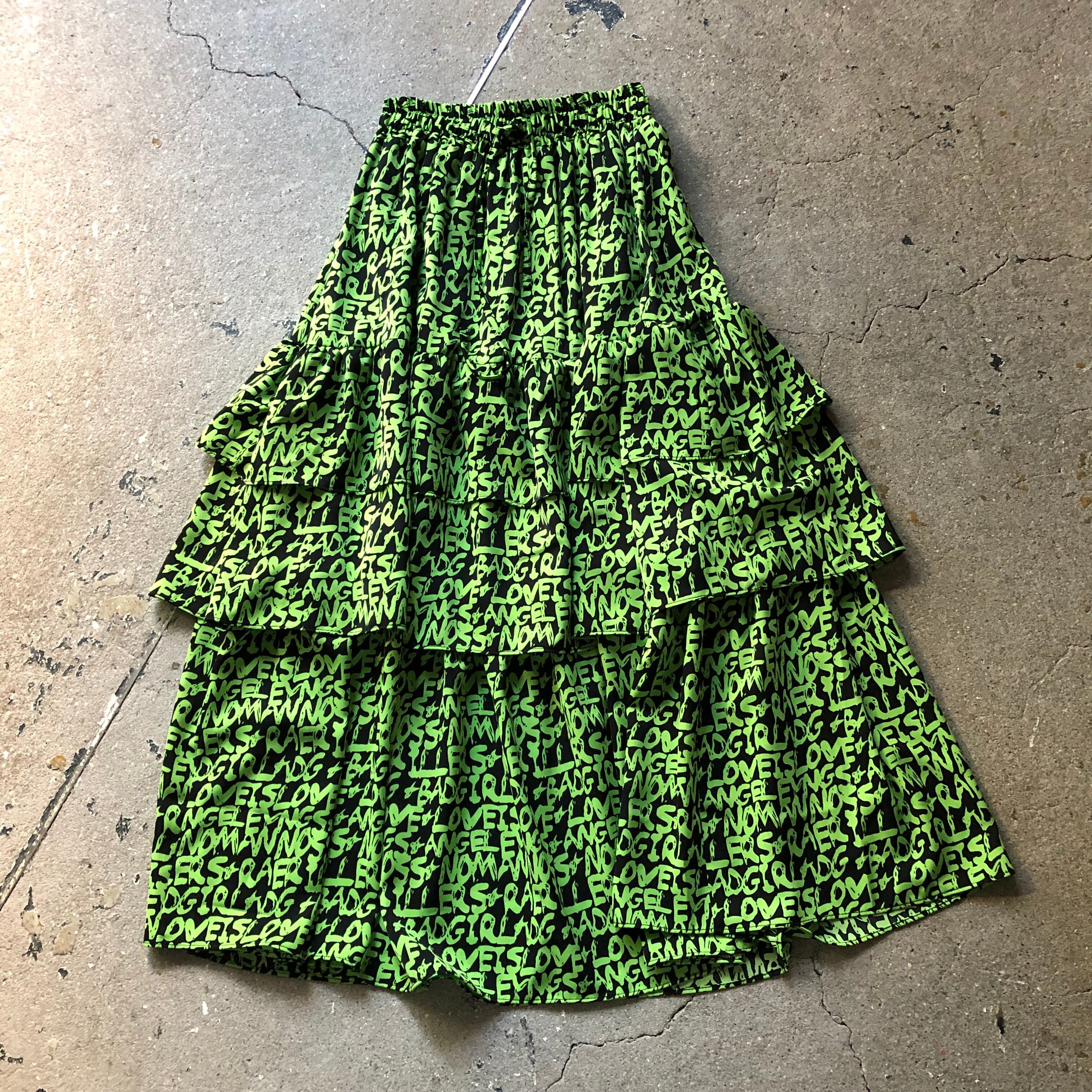 シンプルなトップスやアウターにアクセントとなる個性的な一枚です。