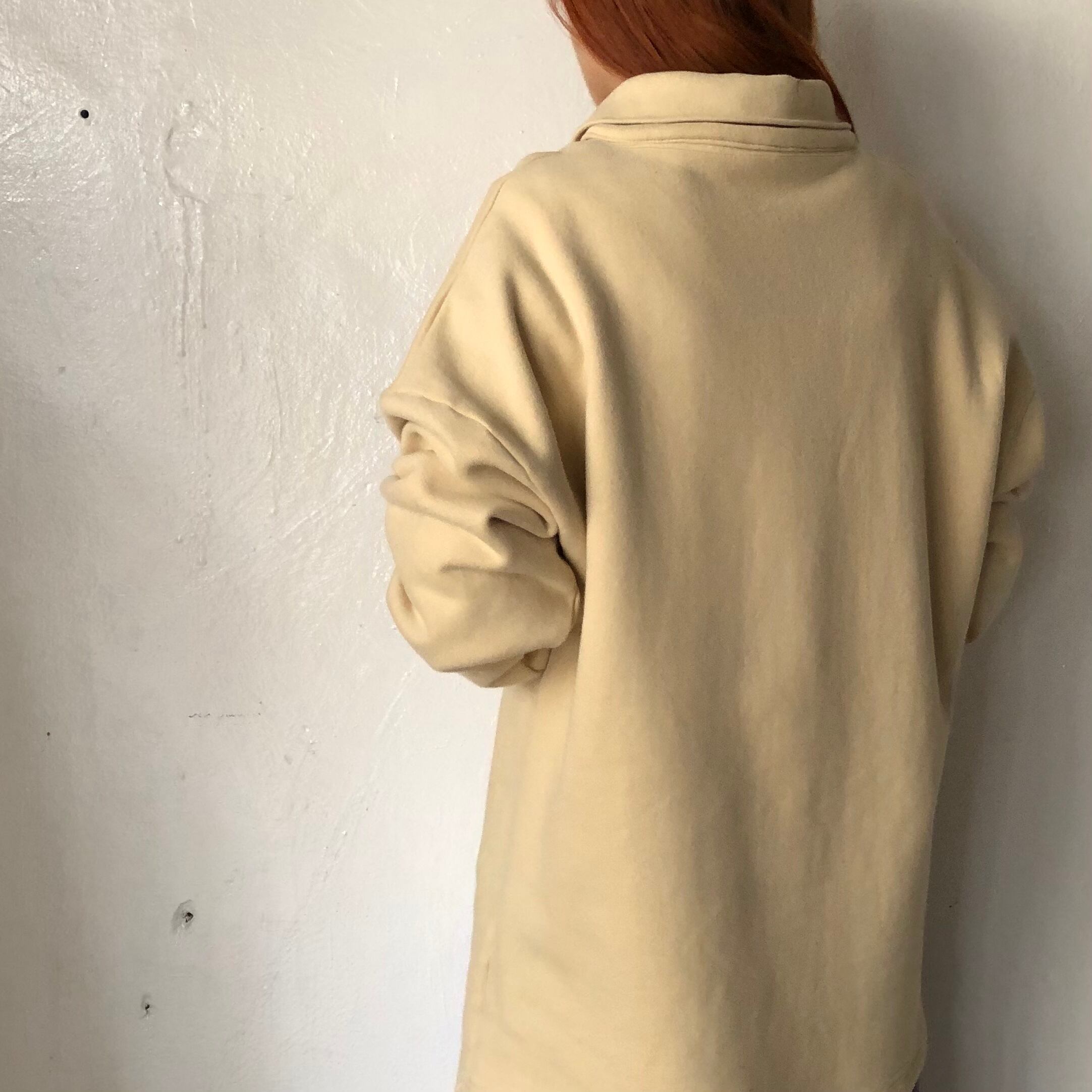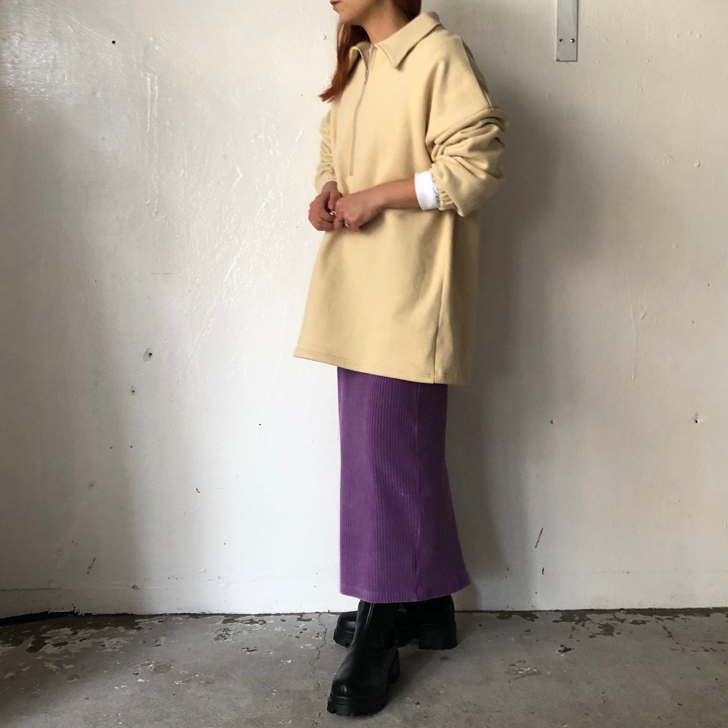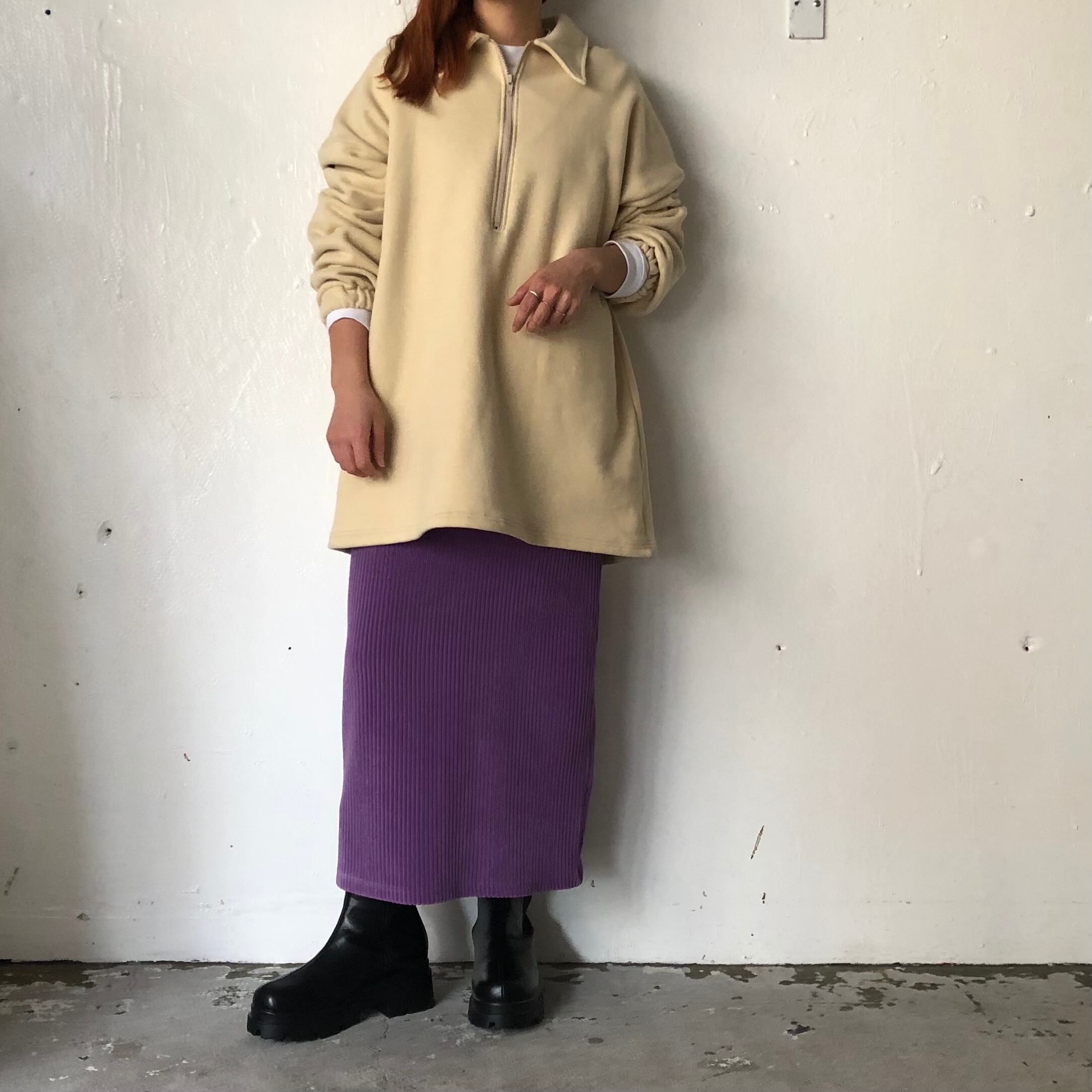 ヒップラインまですっぽりと隠れるハーフジップのスウェットトップスです。裏起毛で温かく、胸元のジップを開けてインナーをアピールしながら着用を楽しめます。