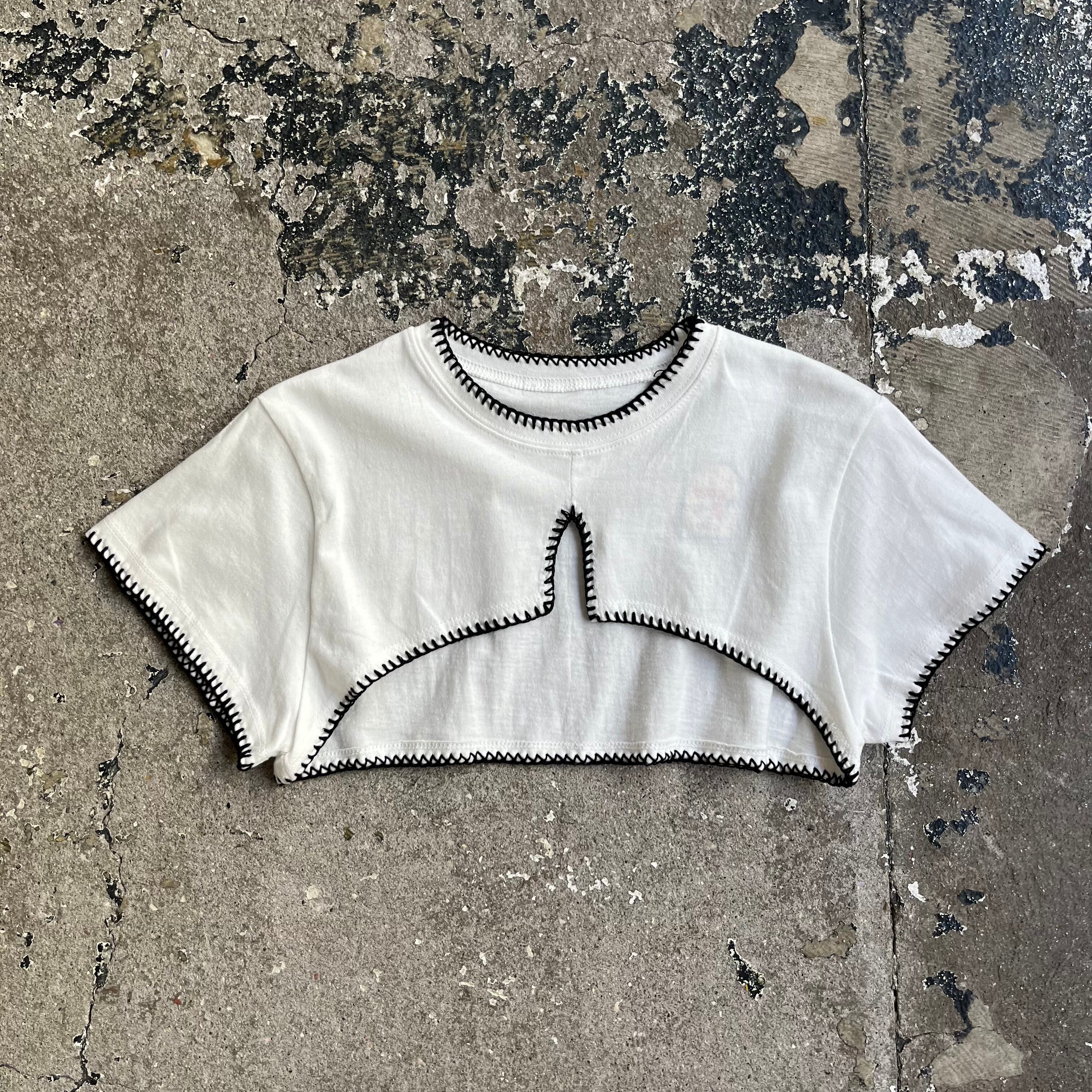 レイヤードに活躍するアクセントTシャツです。スリーブレスのトップスやワンピースと相性よく着用いただけます。