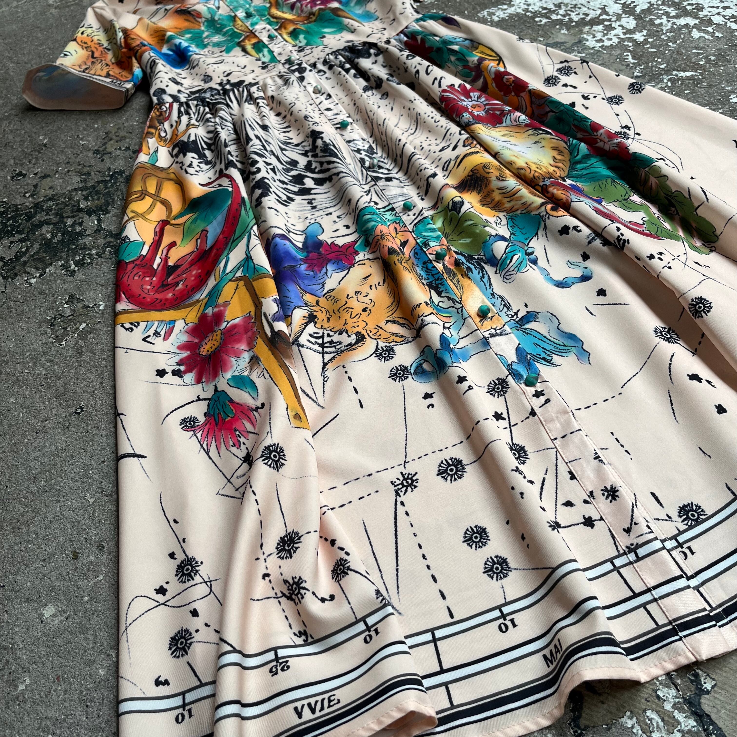 インパクトのあるプリントが印象的なシャツワンピースです。カラフルな色味を活かした一枚コーディネートやジャケットと合わせたシックコーデ、羽織としても楽しめて、着回しきく一枚です。