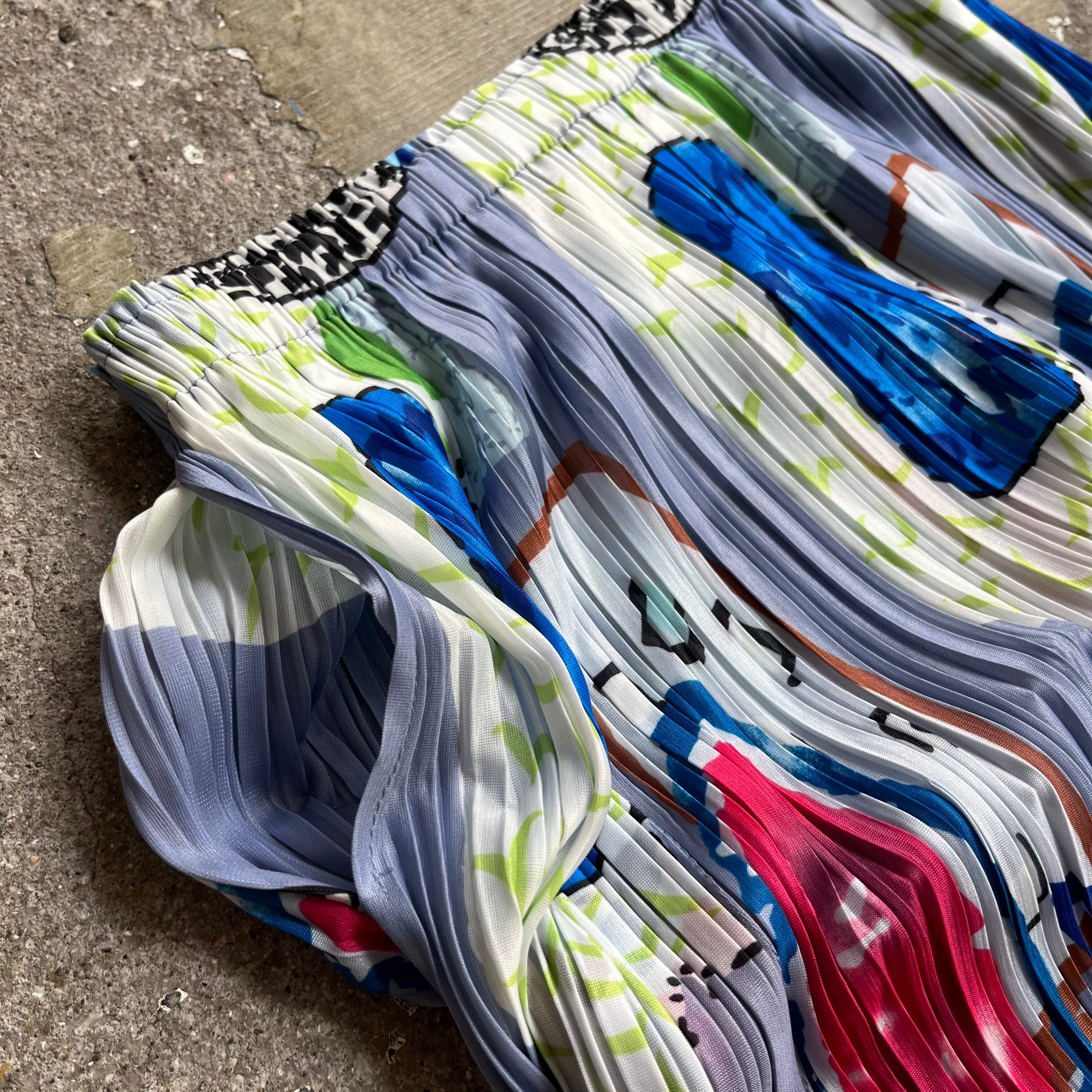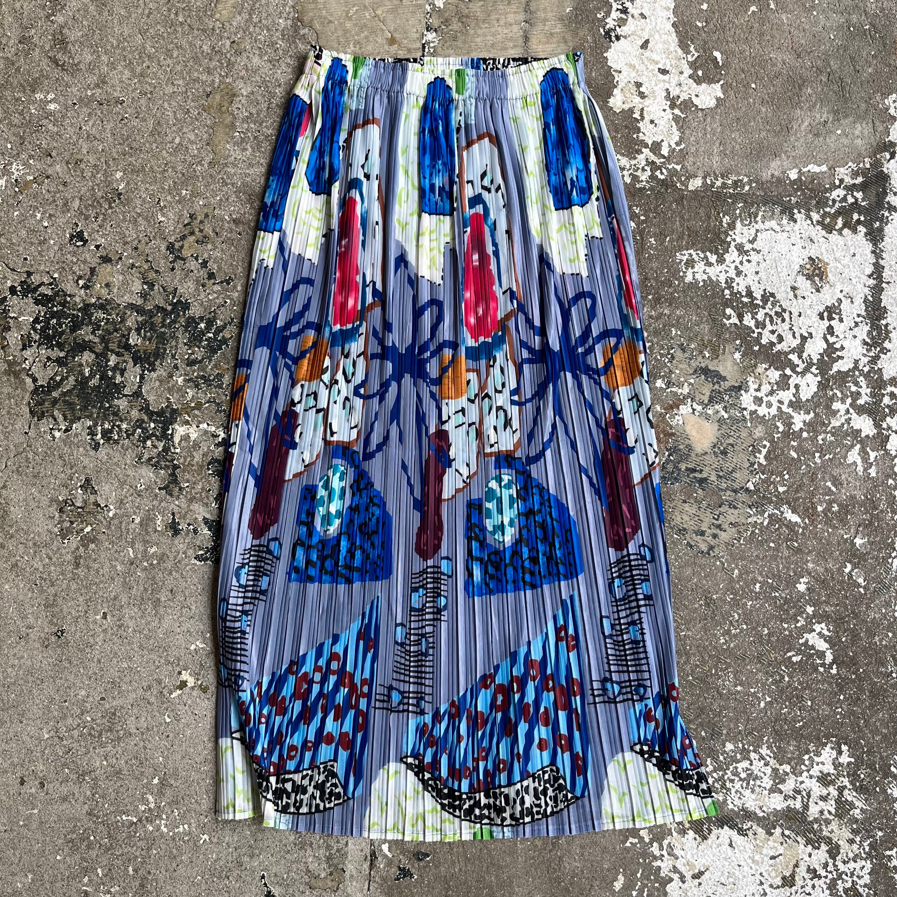 インパクトのあるプリントが印象的なスカートです。カラフルな色味を活かしたTシャツコーディネートやパンツレイヤードにもおすすめです。ポケットあります。