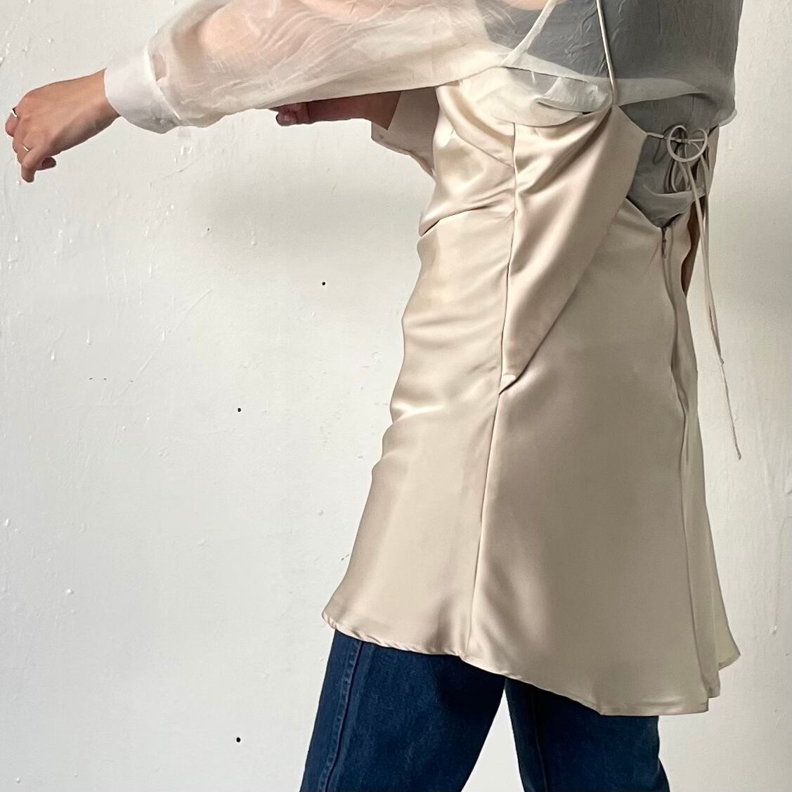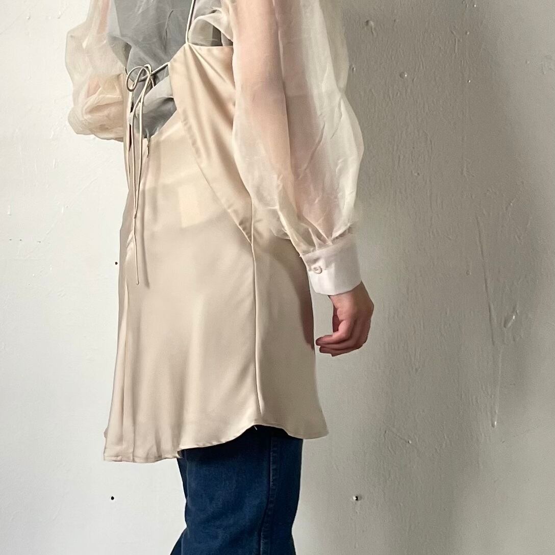 しわ加工の効いたシアー生地はふんわりと軽く、ゆったりと着用いただけます。パフスリーブで女性らしい印象です。