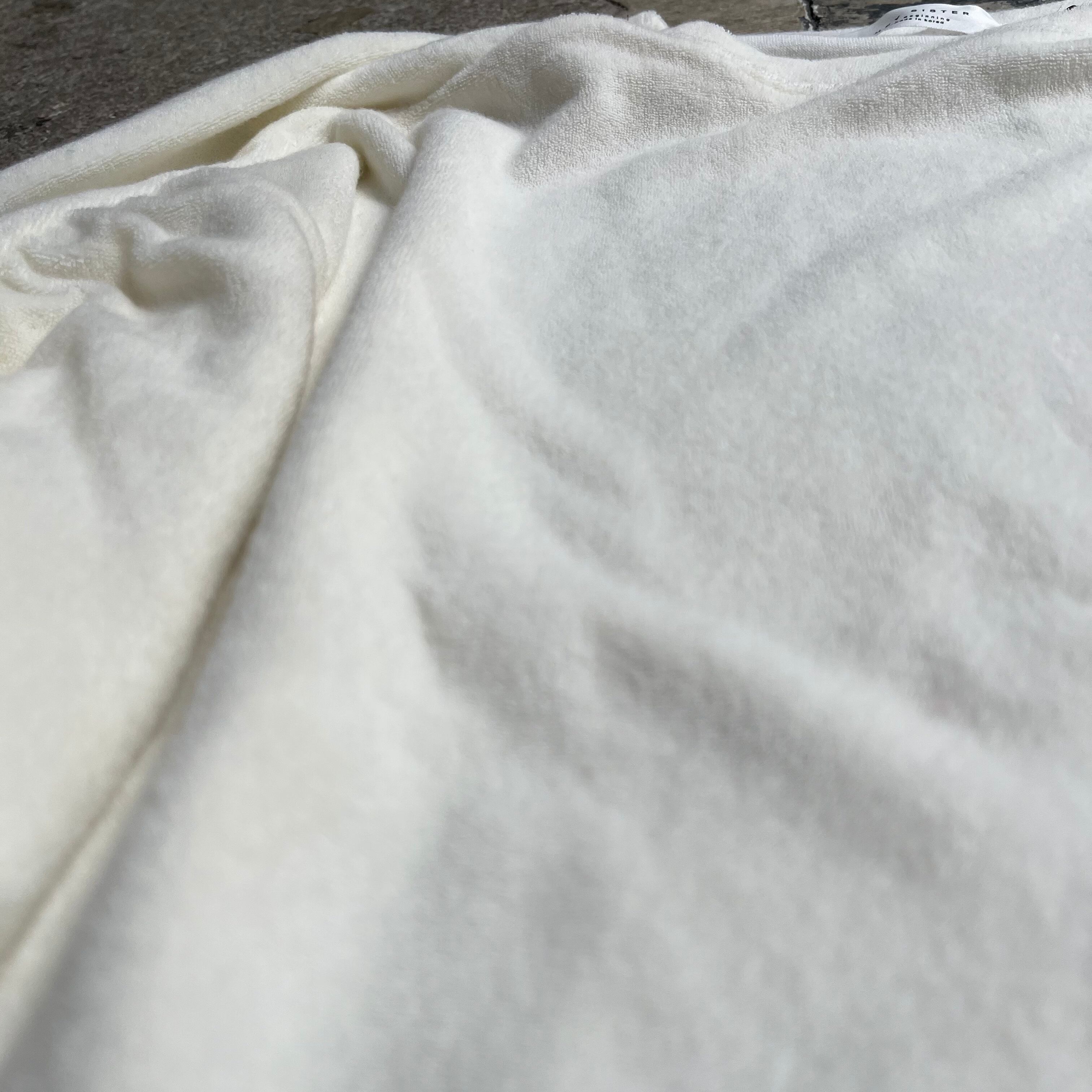 シャーリングの効いたワイドスリーブでディティールがアクセントのパイル生地プルオーバーです。短めな丈はワイドな身幅で落ち感が出ます。ハイウエストのボトムやワンピースに上にレイヤードバリエーションの豊富な1枚です。