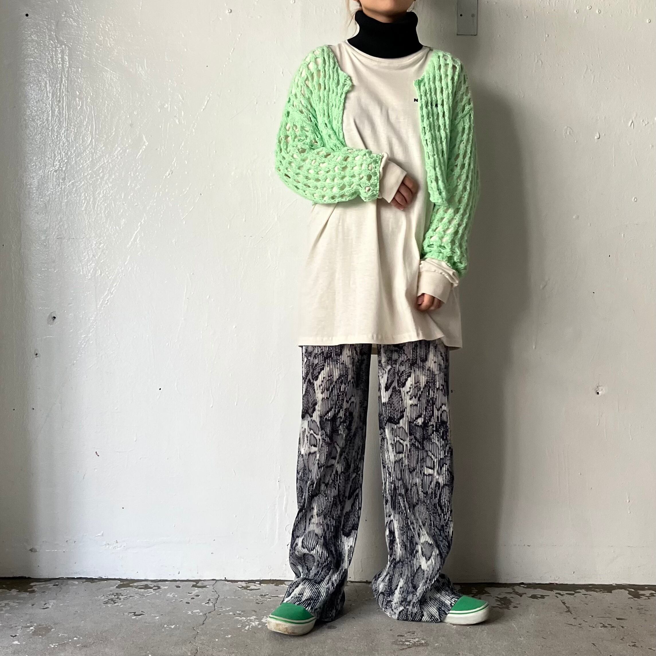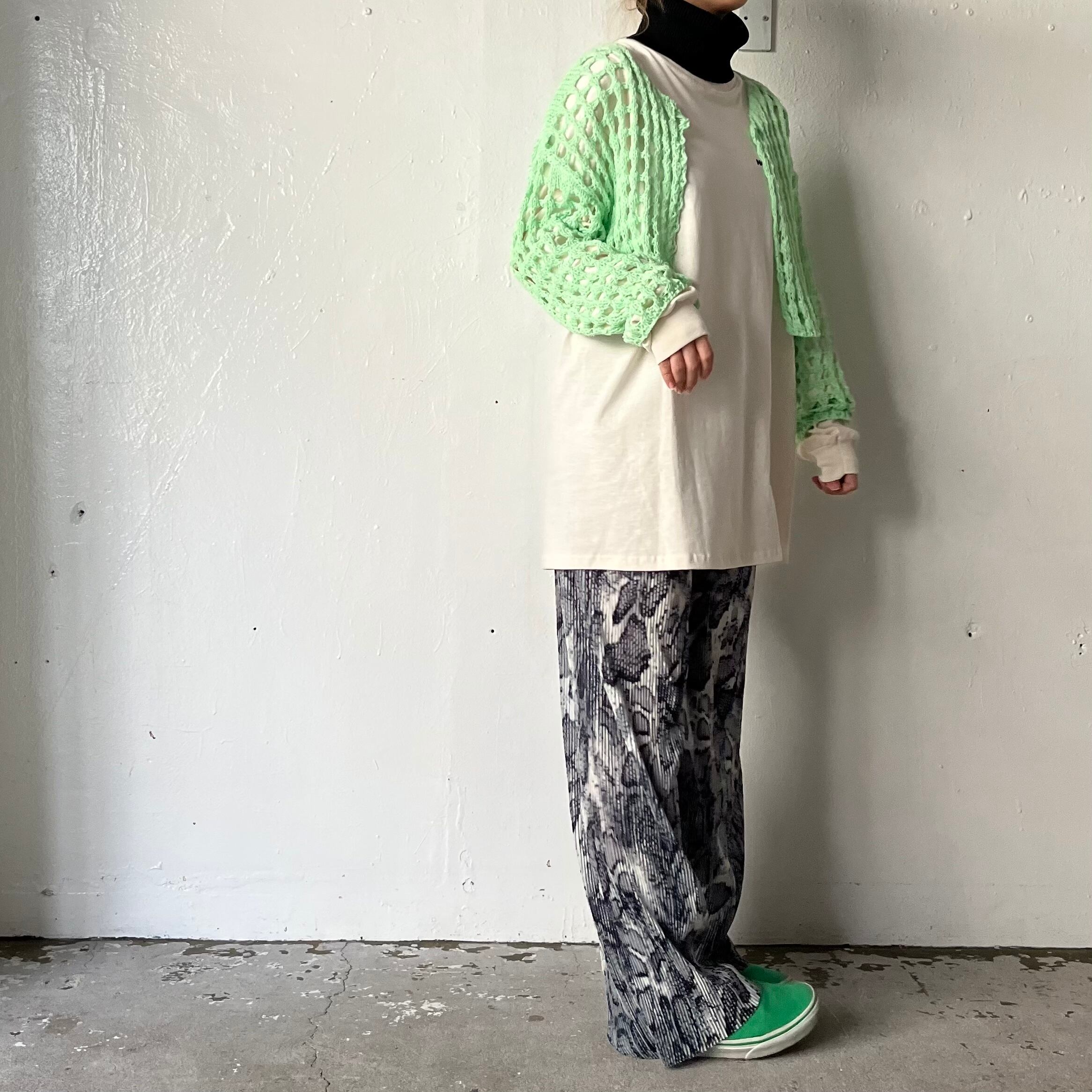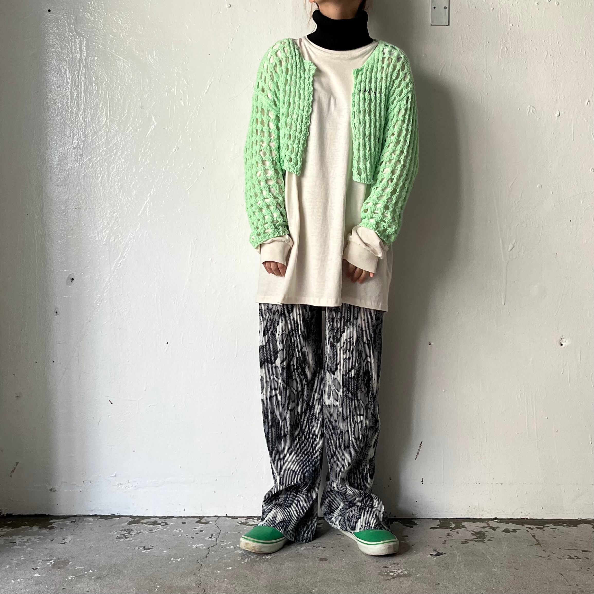 ゆったりとしたローゲージで編まれたニットカーディガンです。カラーリングを楽しんだスタイリングにおすすめの一枚です。