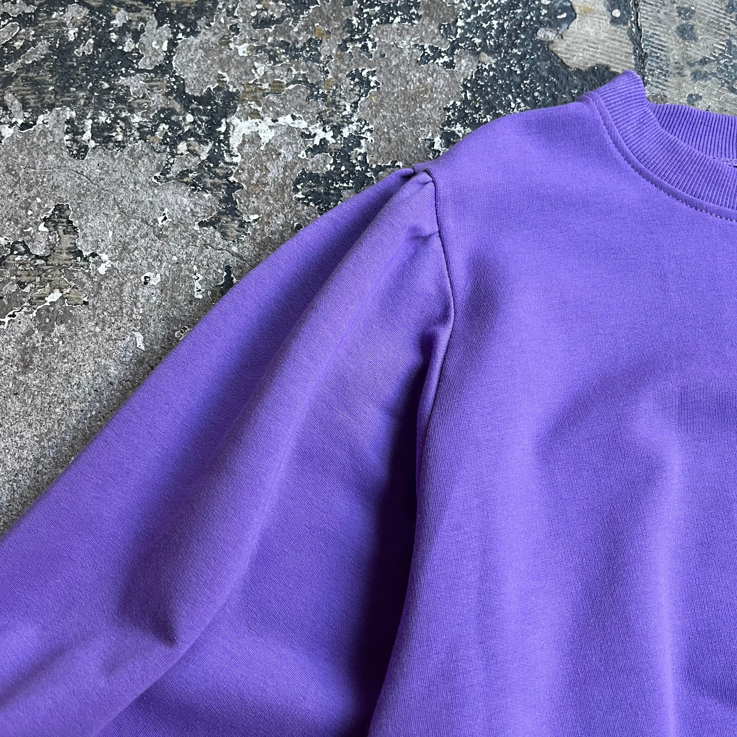 気心地の良い綿地のデザインスウェットです。パフスリーブで女性らしいフォルムです。袖口、裾のリブがやや太めで袖をまくったり、裾をやや高い位置で着用していただくとよりフォルムを楽しめます。シーズン長く重宝できる一枚です。