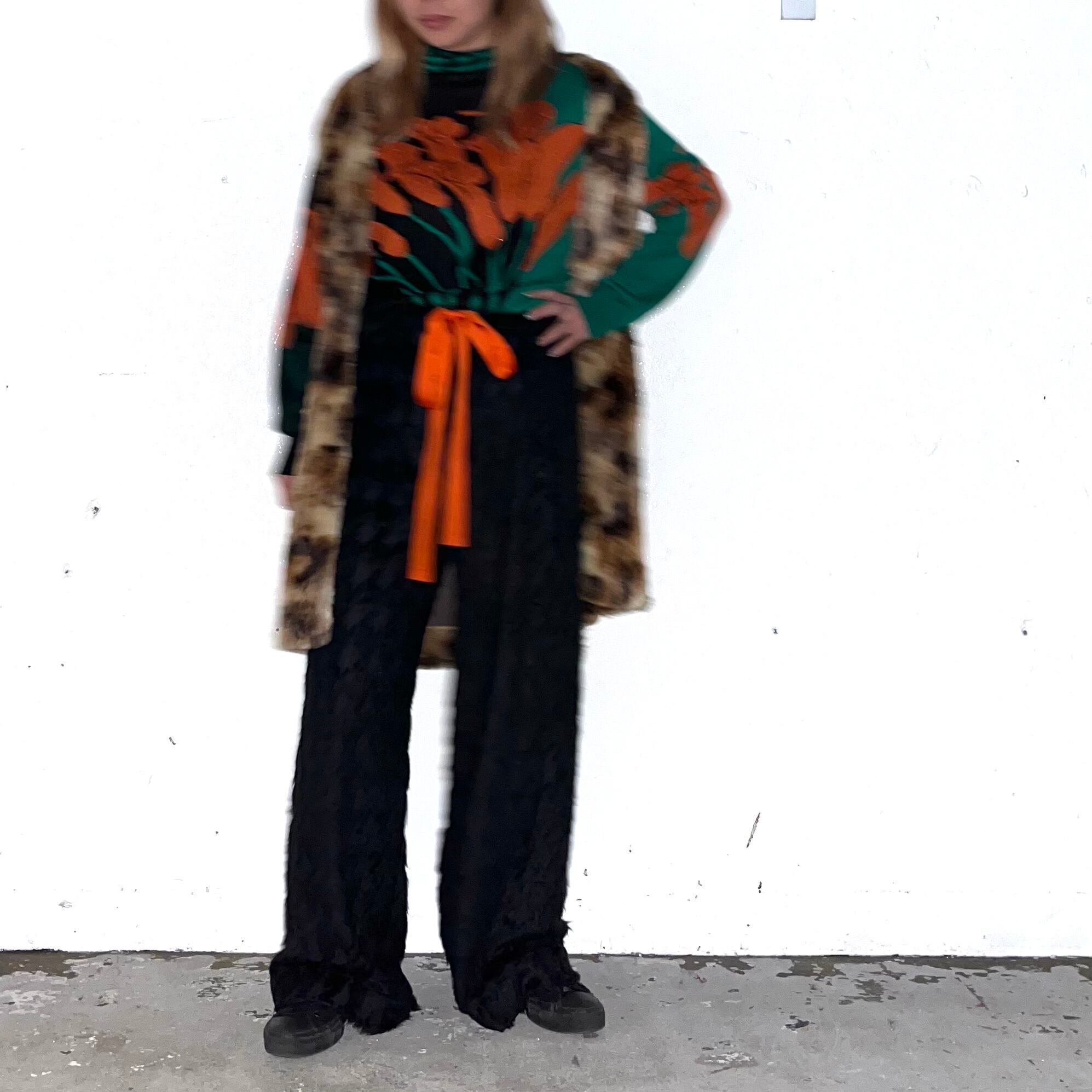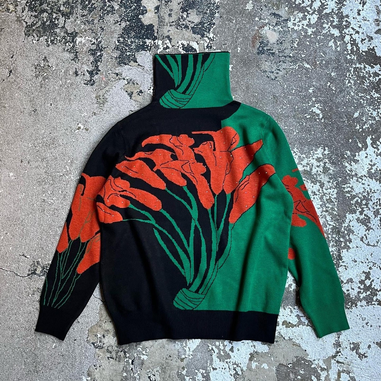 レトロな印象のタートルニットプルオーバーです。配色や模様のアクセントコーディネートにおすすめの一枚です。綿地の強いみっちりとしたハイゲージニットでお肌に直接あてても心地よく着用いただけます。