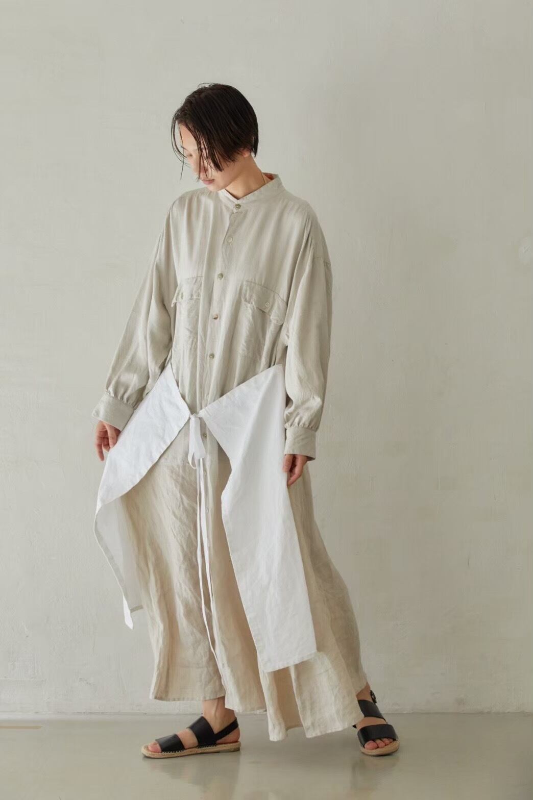 RehersalL:シルクドッキングシャツワンピース Color:Beige